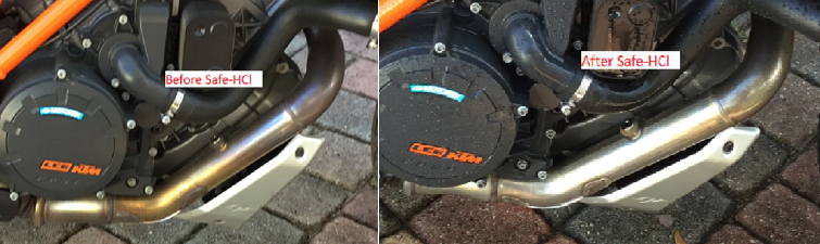 Cleaning headers on motorcycles and automobiles - Use straight or 1 part acid to 1-2 parts water